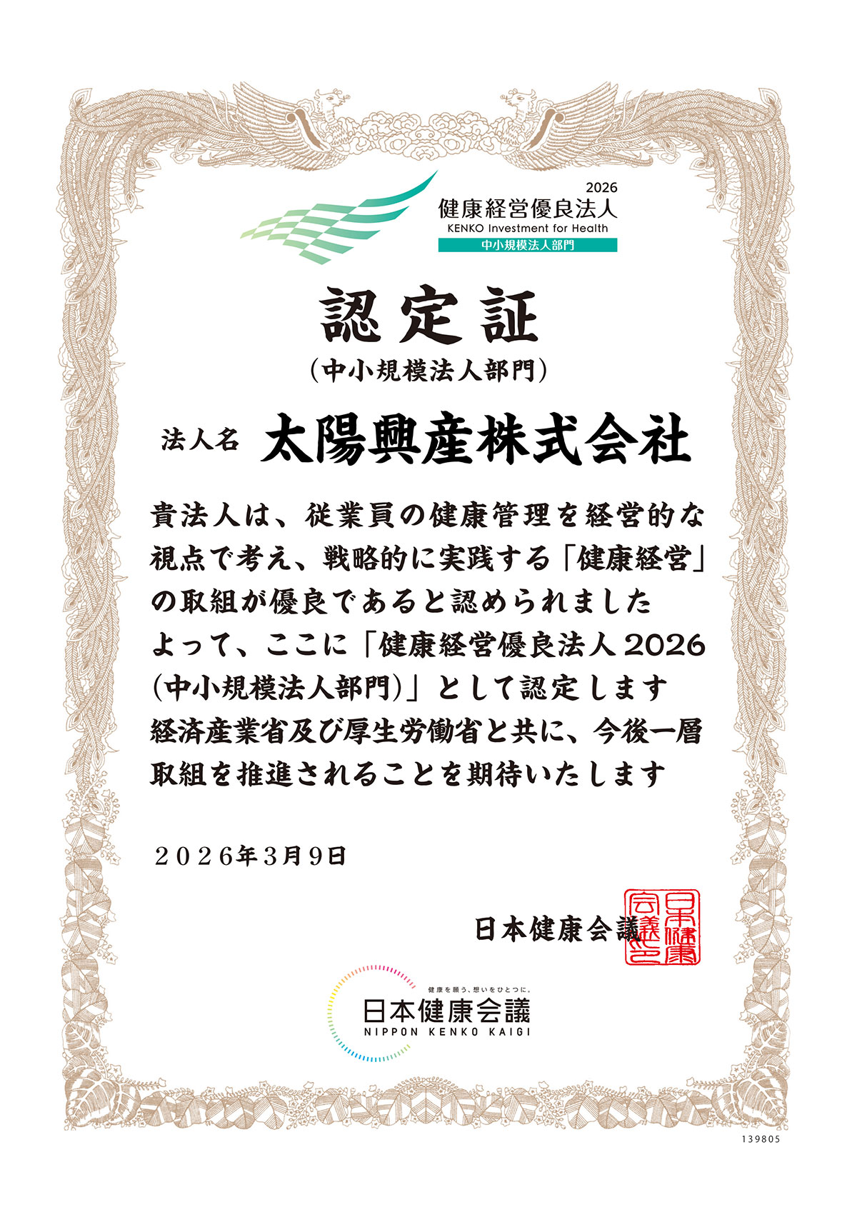今後も、社員が安心して働ける職場環境の整備を進めるとともに、健康経営のさらなる推進に努め、企業としての社会的責任を果たしてまいります。